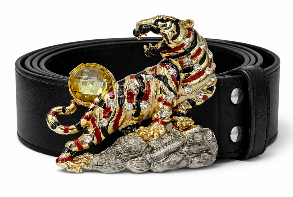 Tiger Belt Buckle Rhinestone Roaring Exotic Animal