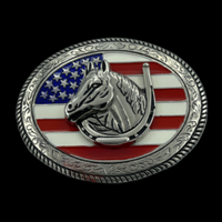 American USA Flag Horse Head Western Belt Buckle Buckles