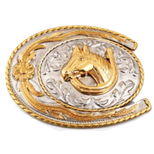 Horseshoes Horses Heads Western Cowboys Cowgirls Two Tone Belt Buckle