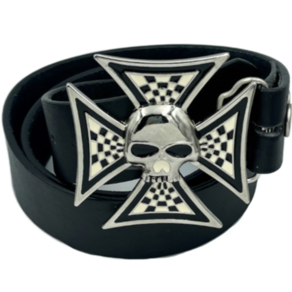 Skull On Checkered Religion Cross Unisex Belt Buckle