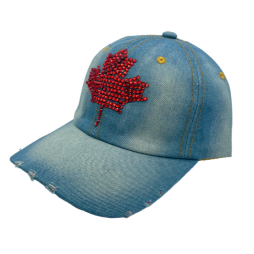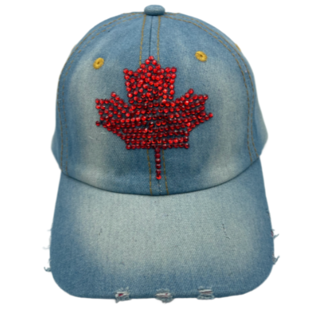 Rhinestone I love Canada Bling Denim Women's Baseball Cap Hat