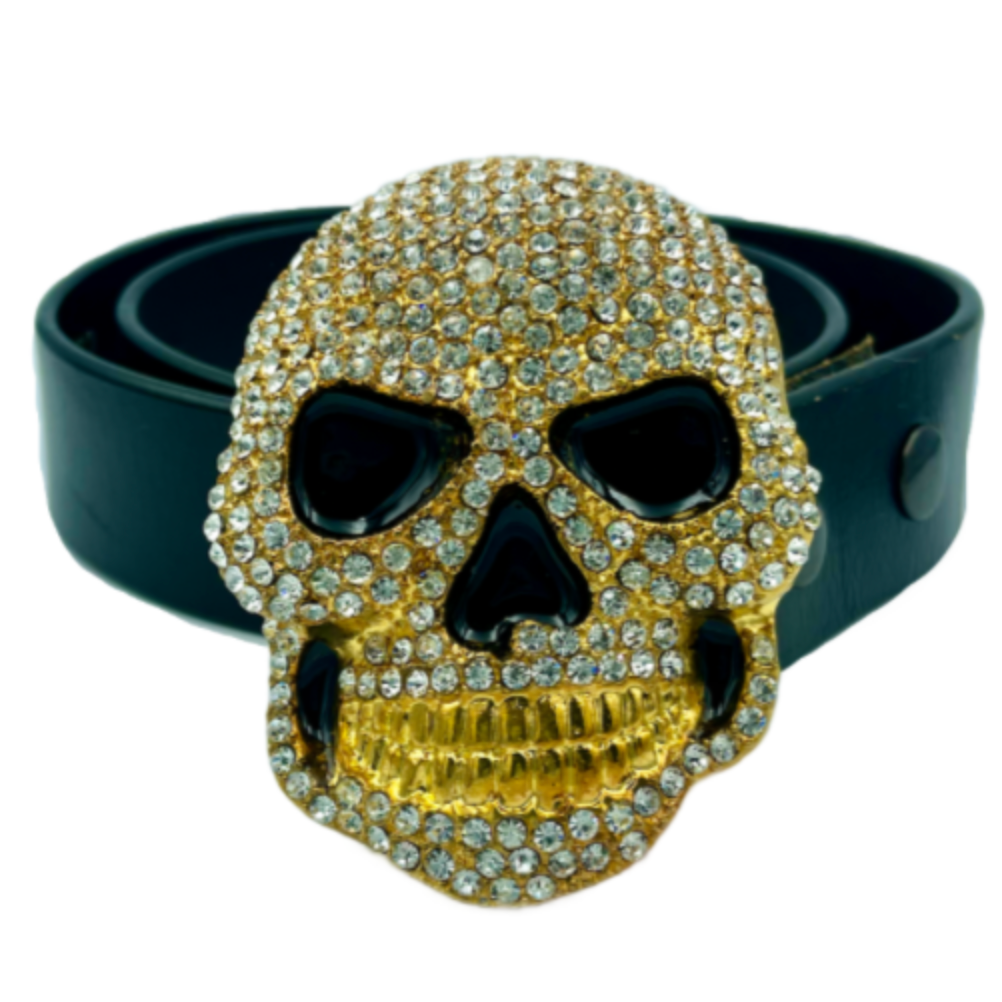 Skull Belt Buckle Gold Metal Bling Rhinestones Halloween Party  Costume