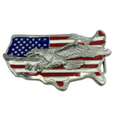 Show your patriotism with this American belt buckle featuring a map, eagle, and flag.