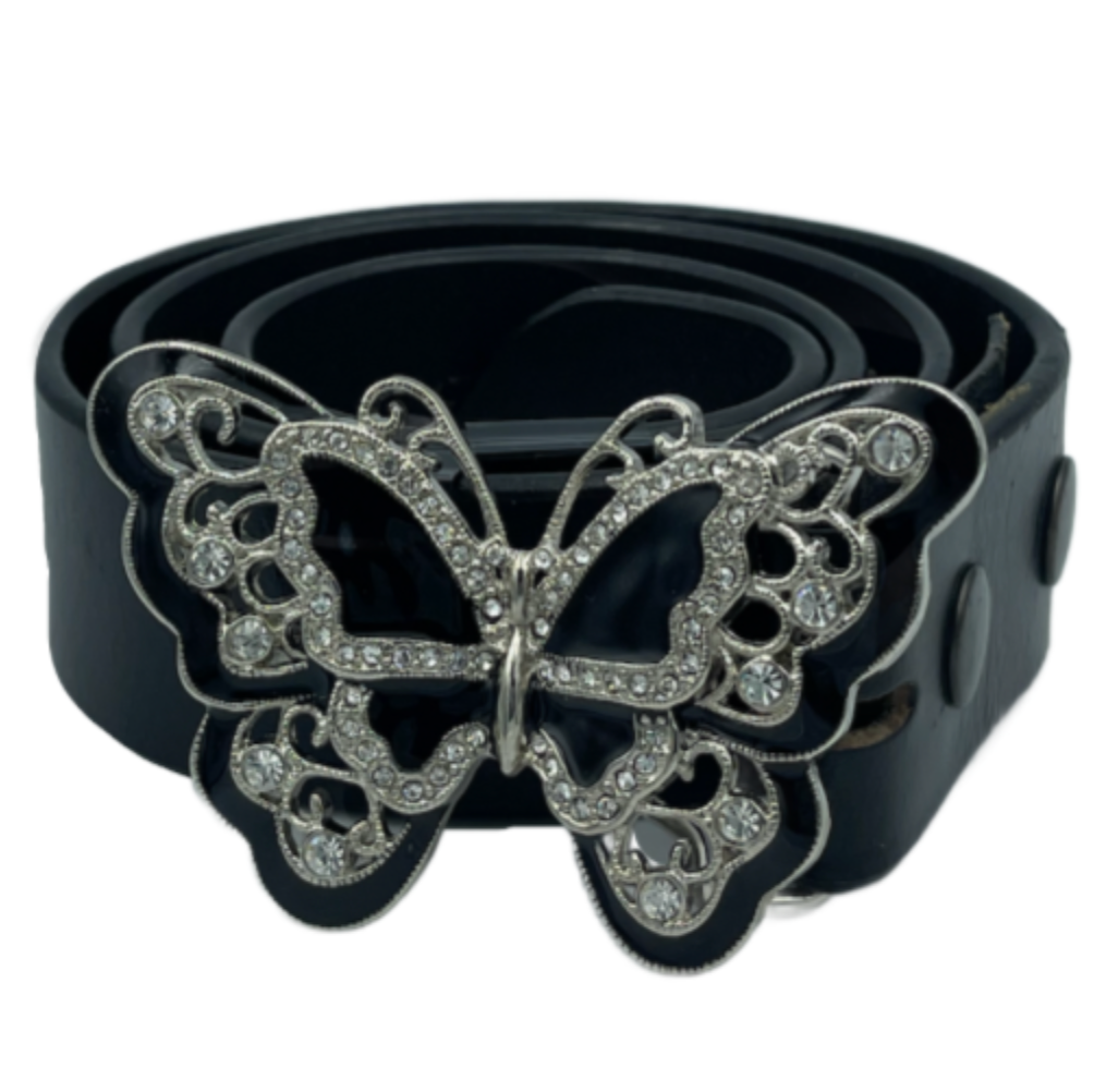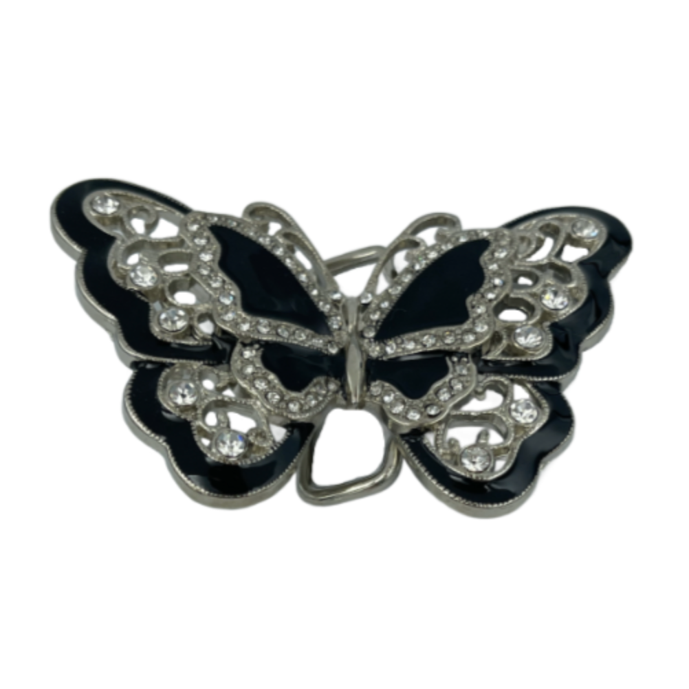 Butterfly Belt Buckle Black Glitter Rhinestone Butterflies Buckles