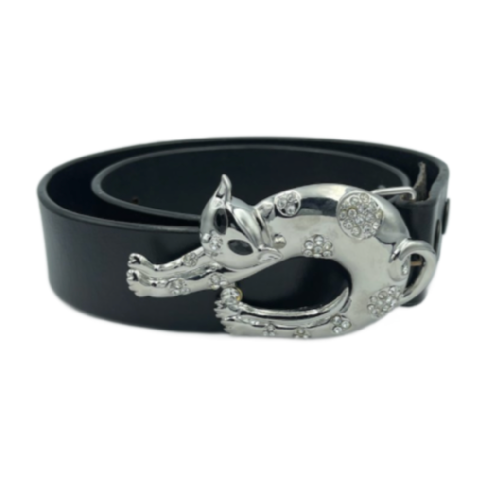 Themed feline rhinestone belt buckle that displays your love for cats. A must-have for pet cat owners enthusiasts.