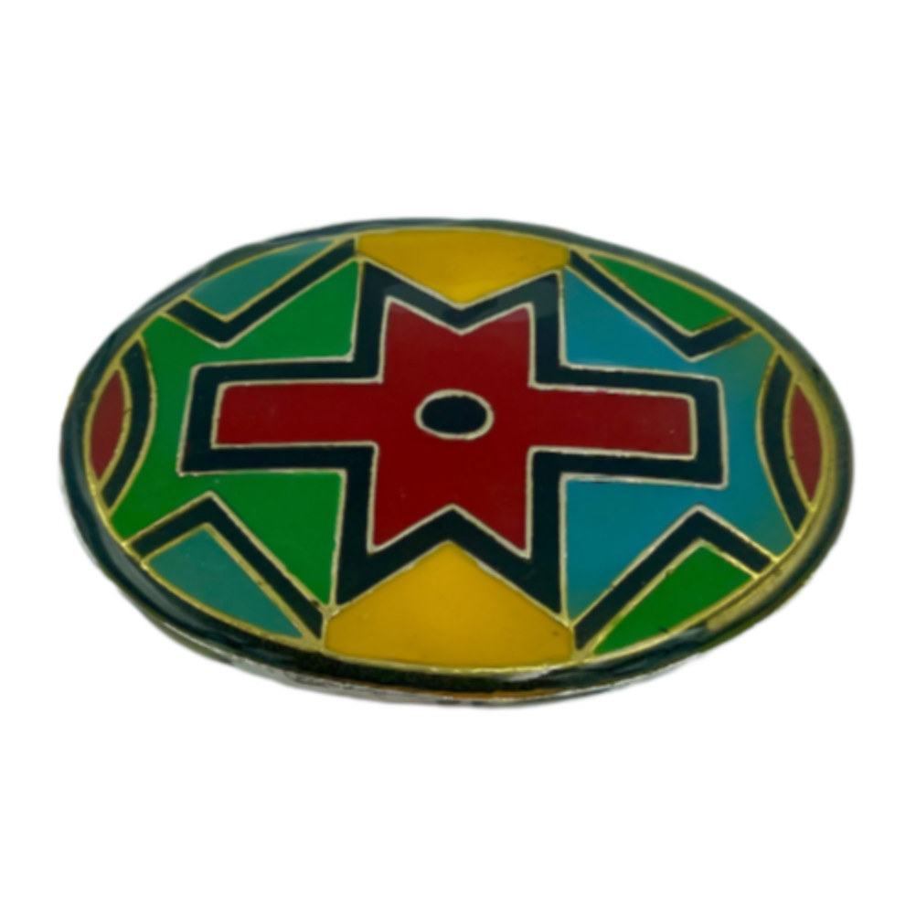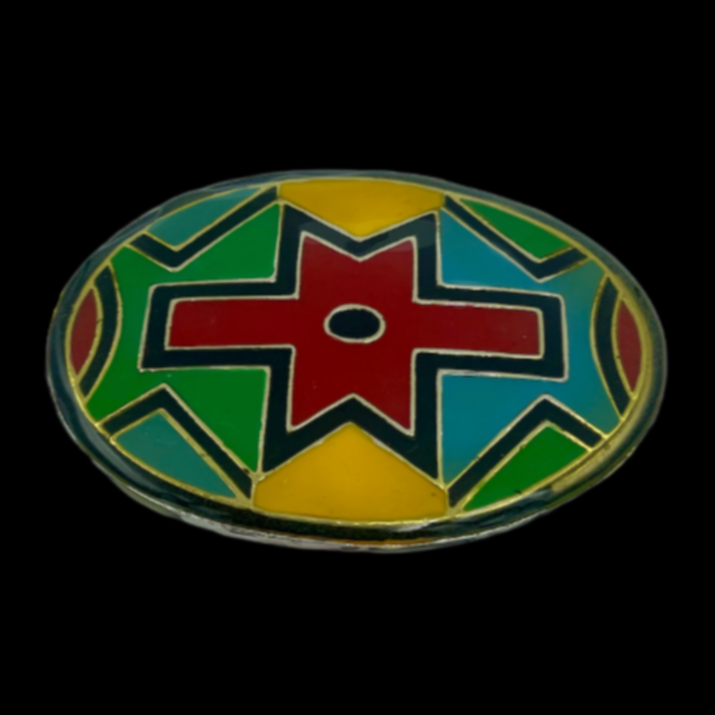 Hebilla de cinturón de arte maya azteca de la Cruz Roja nativa colorida