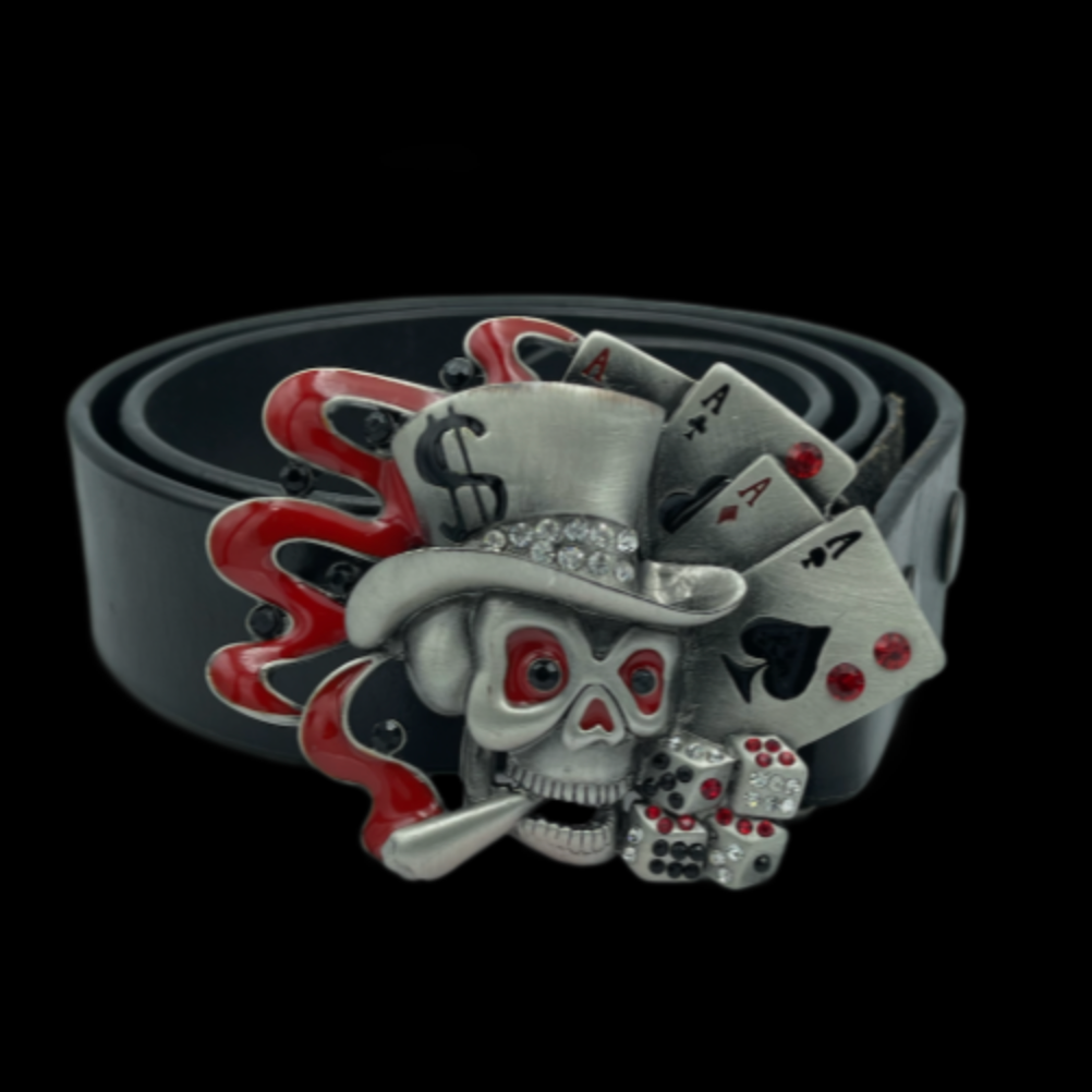 Signo de dólar Hebilla de cinturón Cráneo Fumar cigarro Casino Tarjetas Dados Hebillas Cinturones