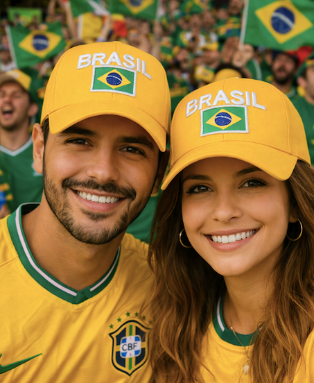Brasil Flag Unisex Cap White Embroidered Baseball Hat for Soccer Fans