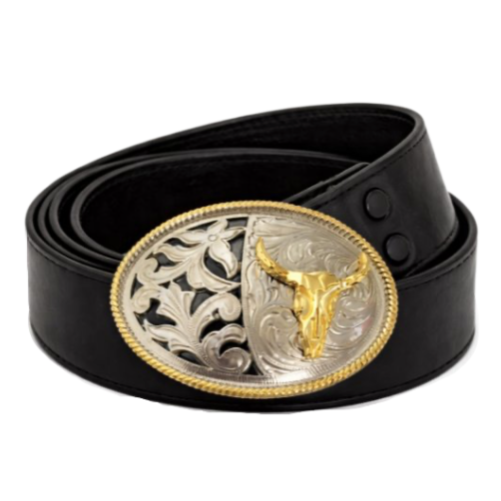 Dos tonos oro plata Longhorn Steer Bull hebilla de cinturón occidental hebillas