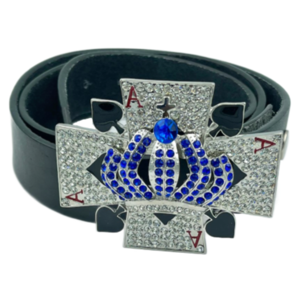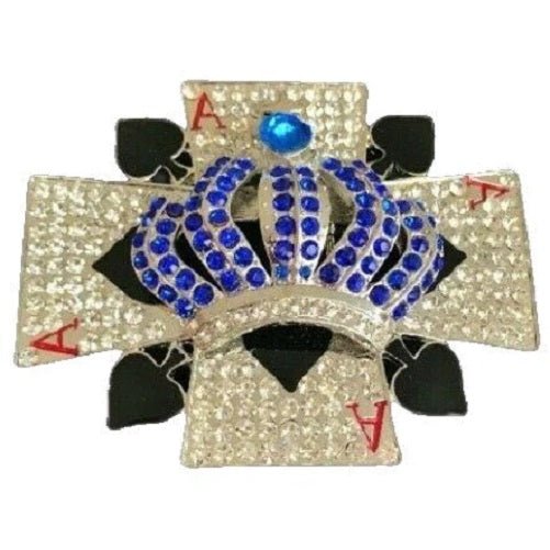 Strass éblouissants couronne croix as de pique cartes de casino boucle porte-bonheur qui fera briller n'importe quelle ceinture de joueur !