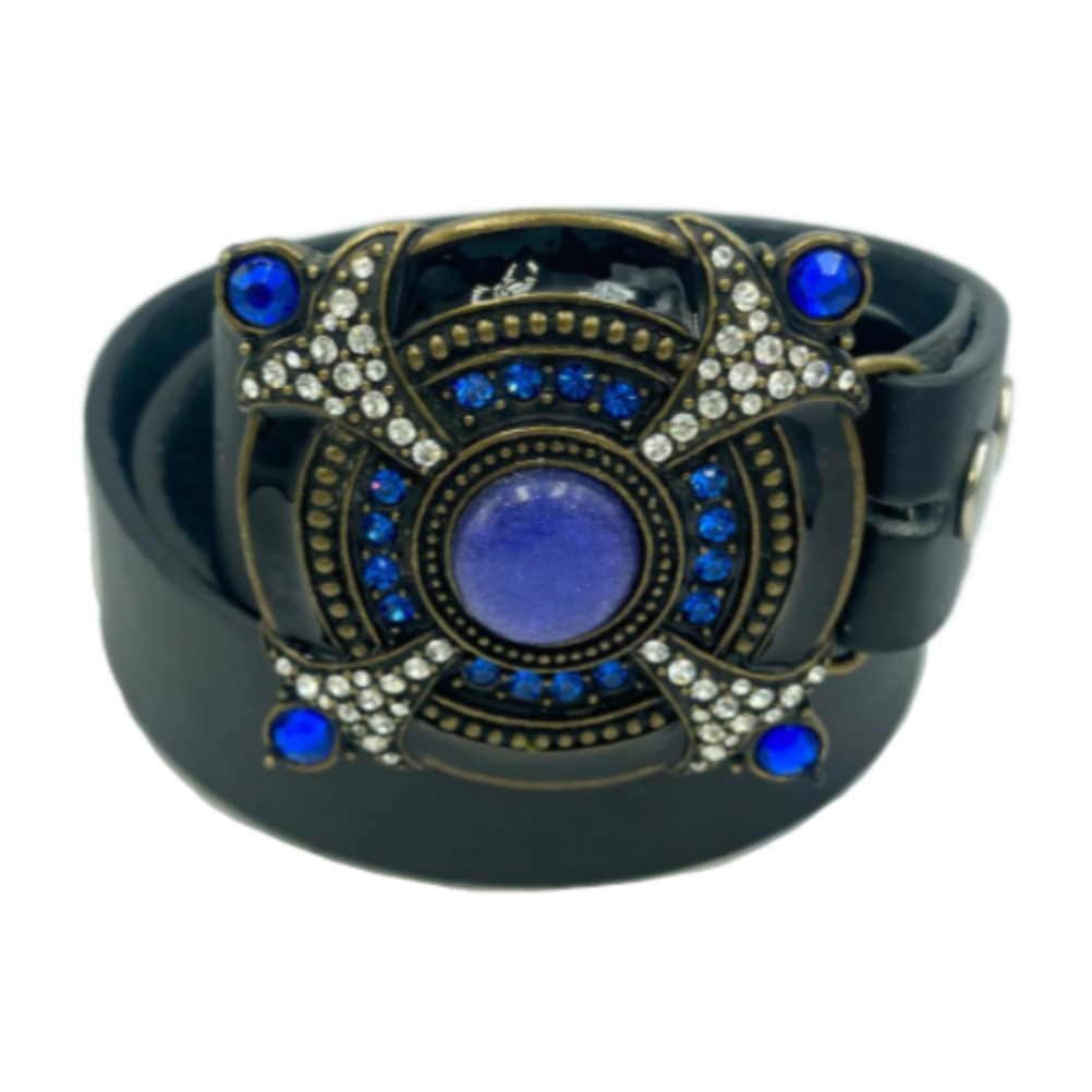 Boucle de ceinture unique en pierre bleue et strass blancs pour femmes