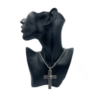 Unisex Double Plain Rhinestones Cross Pendant Christian Necklace Fashion Jewelry