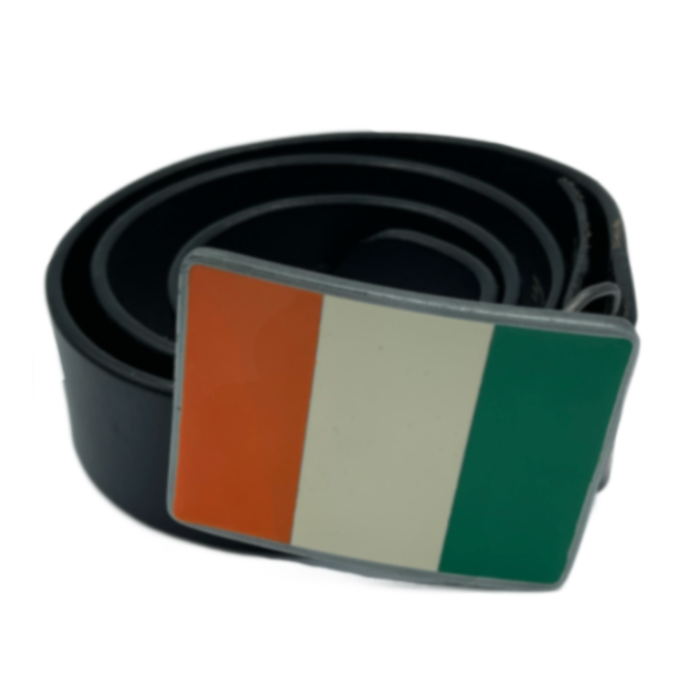 Stylish Cote d'Ivoire flag belt buckle for patriot individuals, representing Yamoussoukro, Bouake cities and Baoulé people of this African nation.