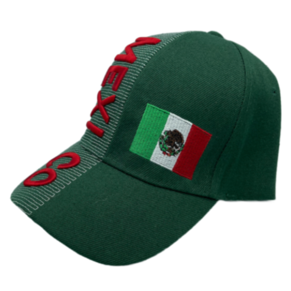 HAS EMBROIDERED MEXICO ON THE SIDE AND FLAG ON THE FRONT
