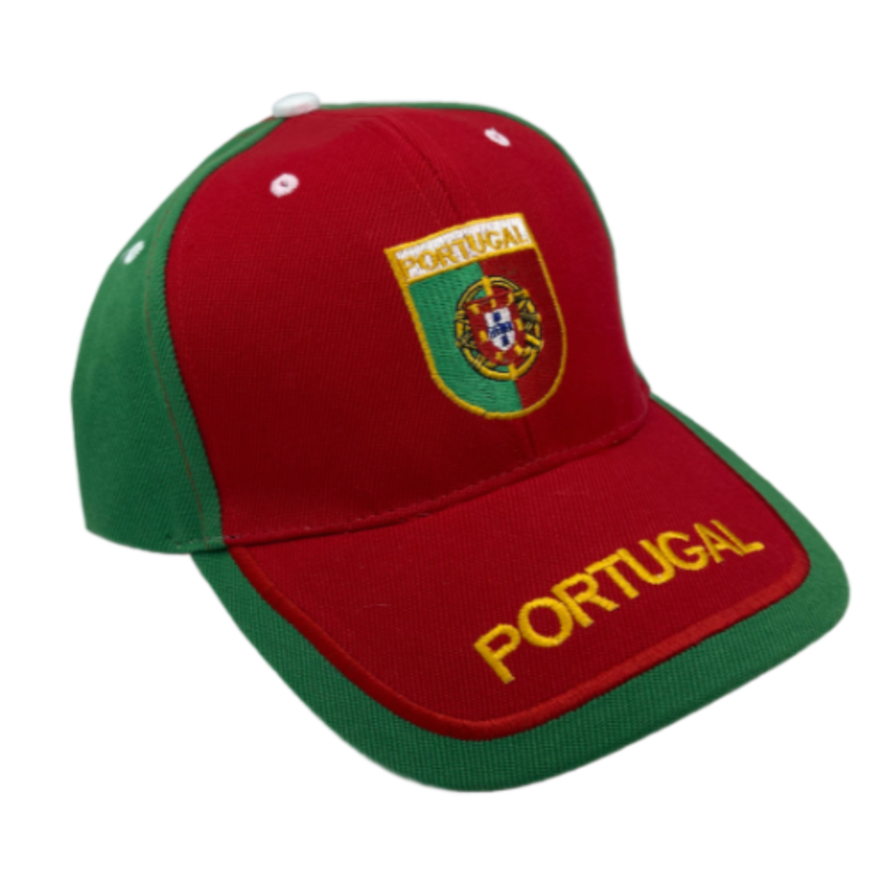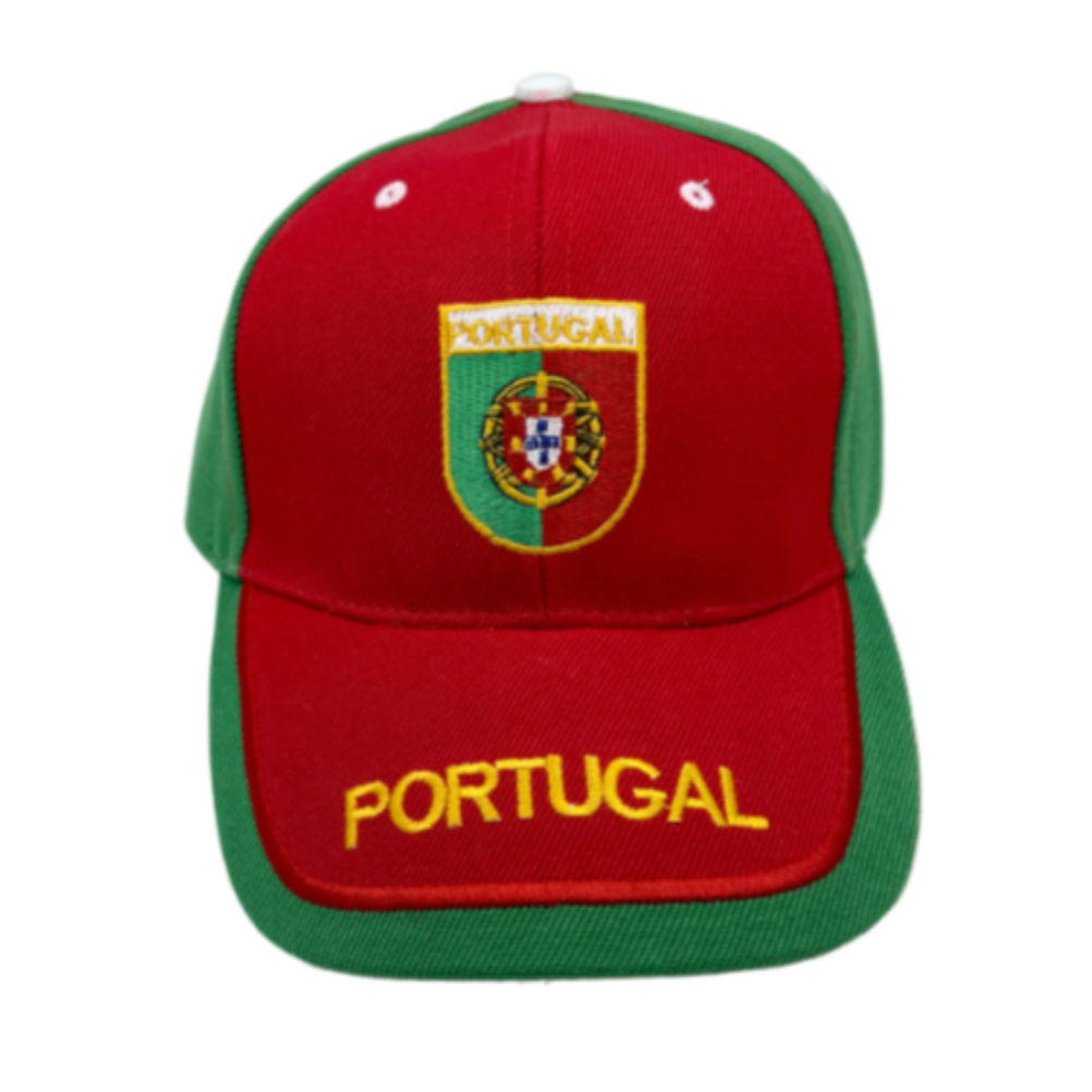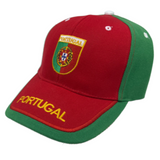 Show your love of Portugal with this red and green Portuguese flag cap! Embroidered logo on the front and one-size-fits-all. Comfortable stylish baseball cap, perfect for men, women or kids.