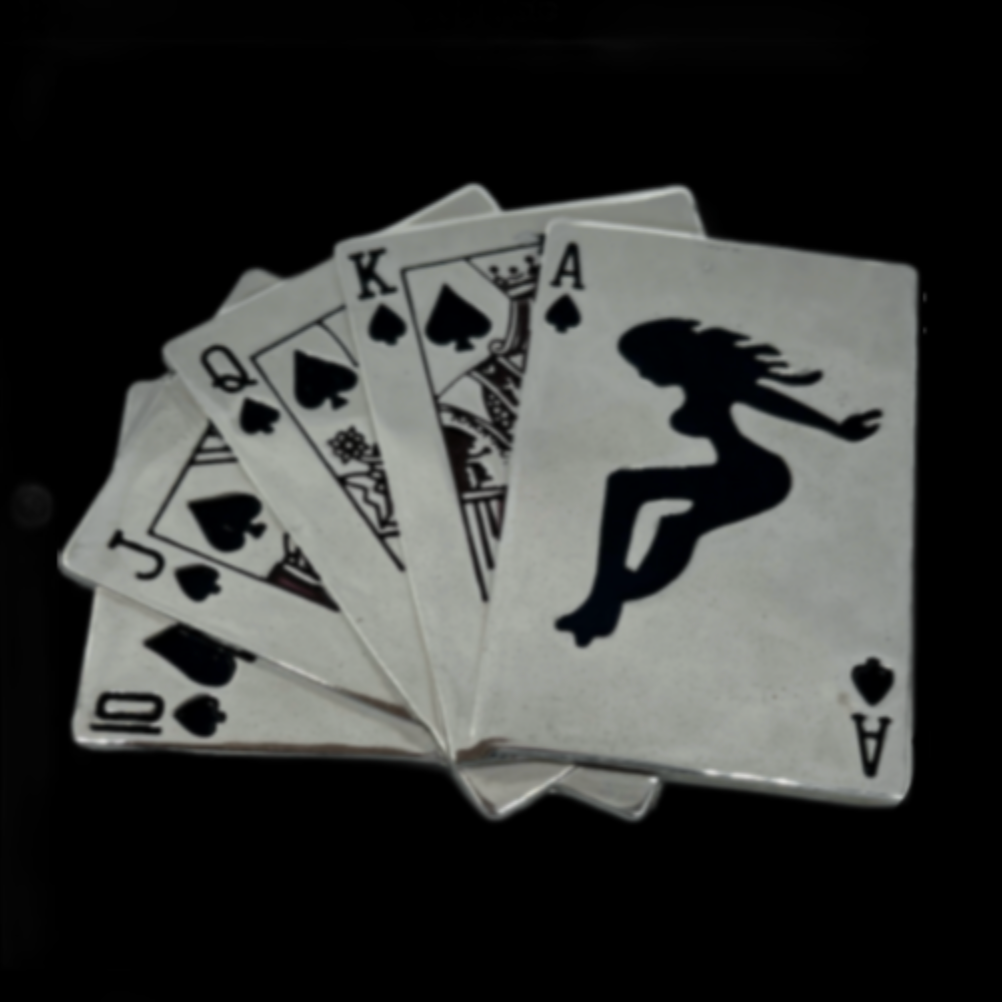 Royal Straight Flush Casino Gambling Poker Mudflap Belt Buckle