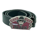 This is a skull Belt Buckle with the saying (Good Guys Wear Black)
