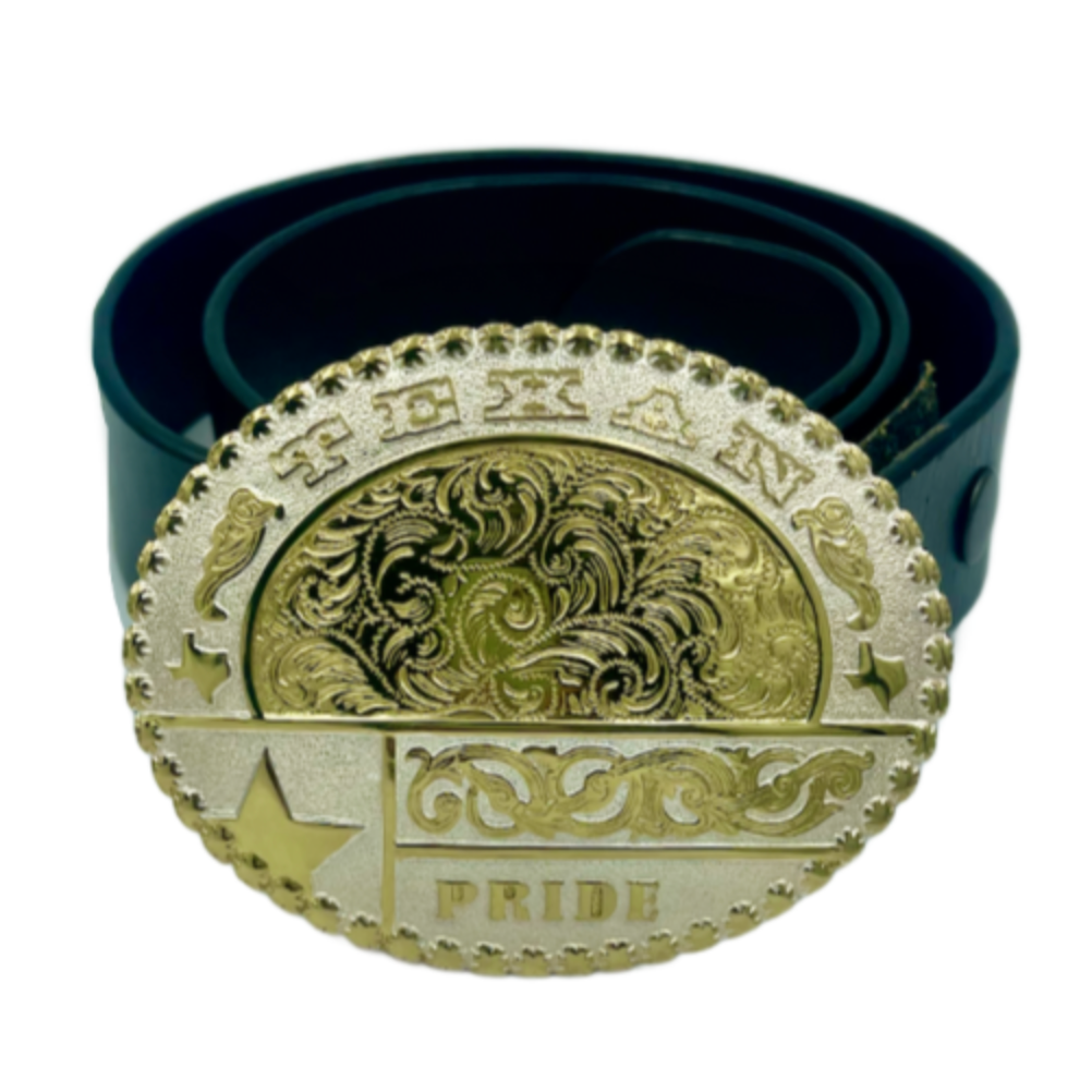 Show your Texan pride with this western floral-style belt buckle. Crafted from durable materials, it's the perfect accessory for any western ensemble.
