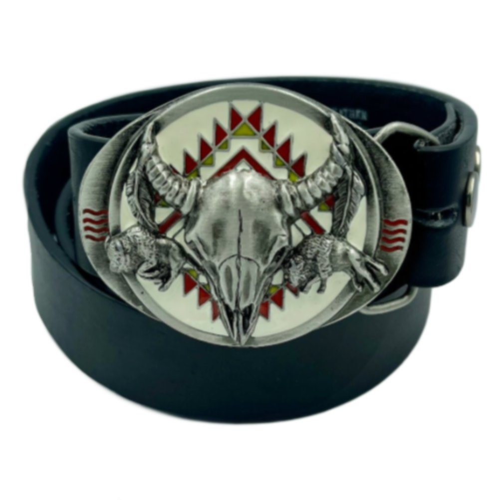 WESTERN NATIVE INDIAN AMERICAN ART LONGHORN BELT BUCKLE